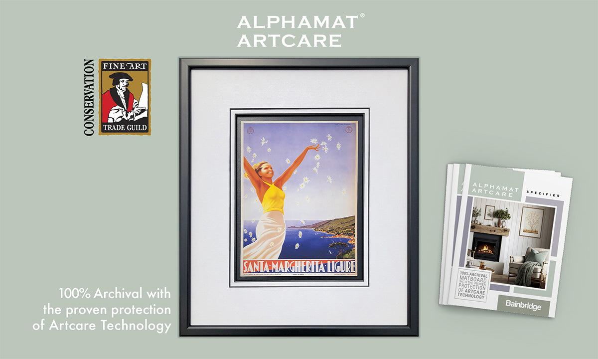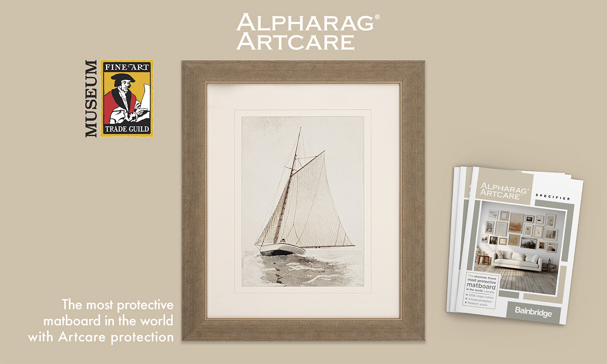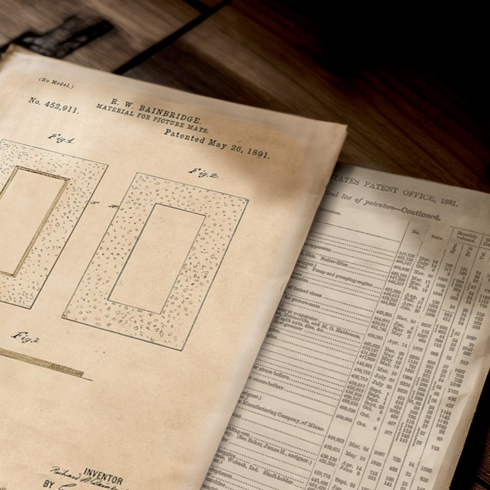 Bainbridge began in 1867 in Brooklyn, NY, making history when Charles T. Bainbridge created his “picture-mat.” In addition to becoming the very first decorative matboard, it introduced color and texture to matting and gave birth to the framing industry as we know it. In 1891, Bainbridge applied for the world’s first official patent on matboard.