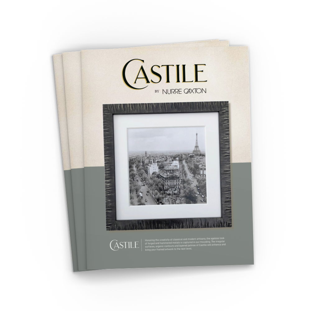 Honoring the creativity of classical and modern artisans, the ageless look of forged and hammered metals is captured in our moulding. The irregular surfaces, organic contours and layered patinas of Castile will enhance and bring your framed artwork to the next level.
